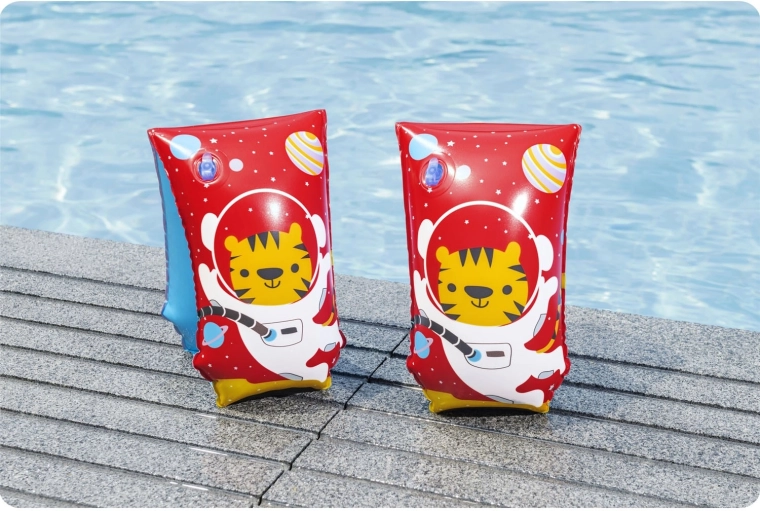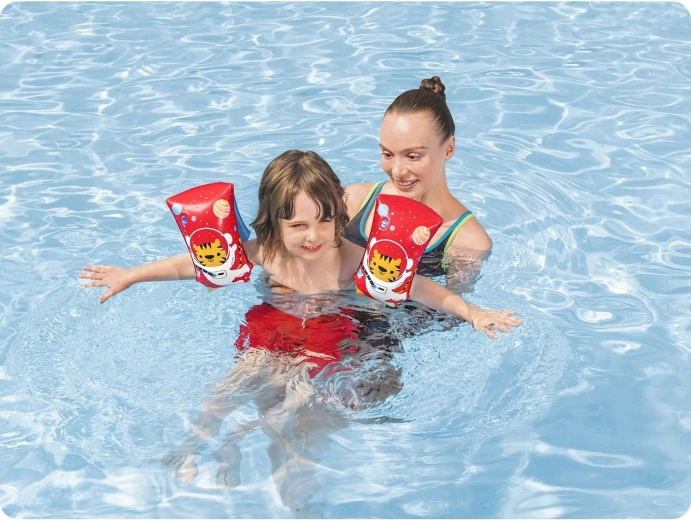 Rendete più semplici ai bambini i primi passi in acqua con i braccioli Bestway leggeri e compatti, dimensioni 30 × 15 cm. La struttura a doppia camera aiuta a mantenere il bambino a galla, mentre il design colorato con il tigrotto motiva a un apprendimento del nuoto giocoso. Ideali per bambini da 5 a 12 anni.