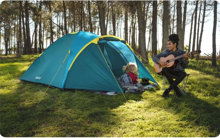 BESTWAY Activeridge Ridge 4 è una tenda affidabile per famiglia e trekking per quattro persone, progettata per pernottamenti confortevoli dalla primavera all'autunno. Il resistente poliestere 190T e il pavimento in PE proteggono dall'umidità, mentre il sistema di ventilazione ben studiato con zanzariera assicura un ricambio d'aria senza insetti molesti.