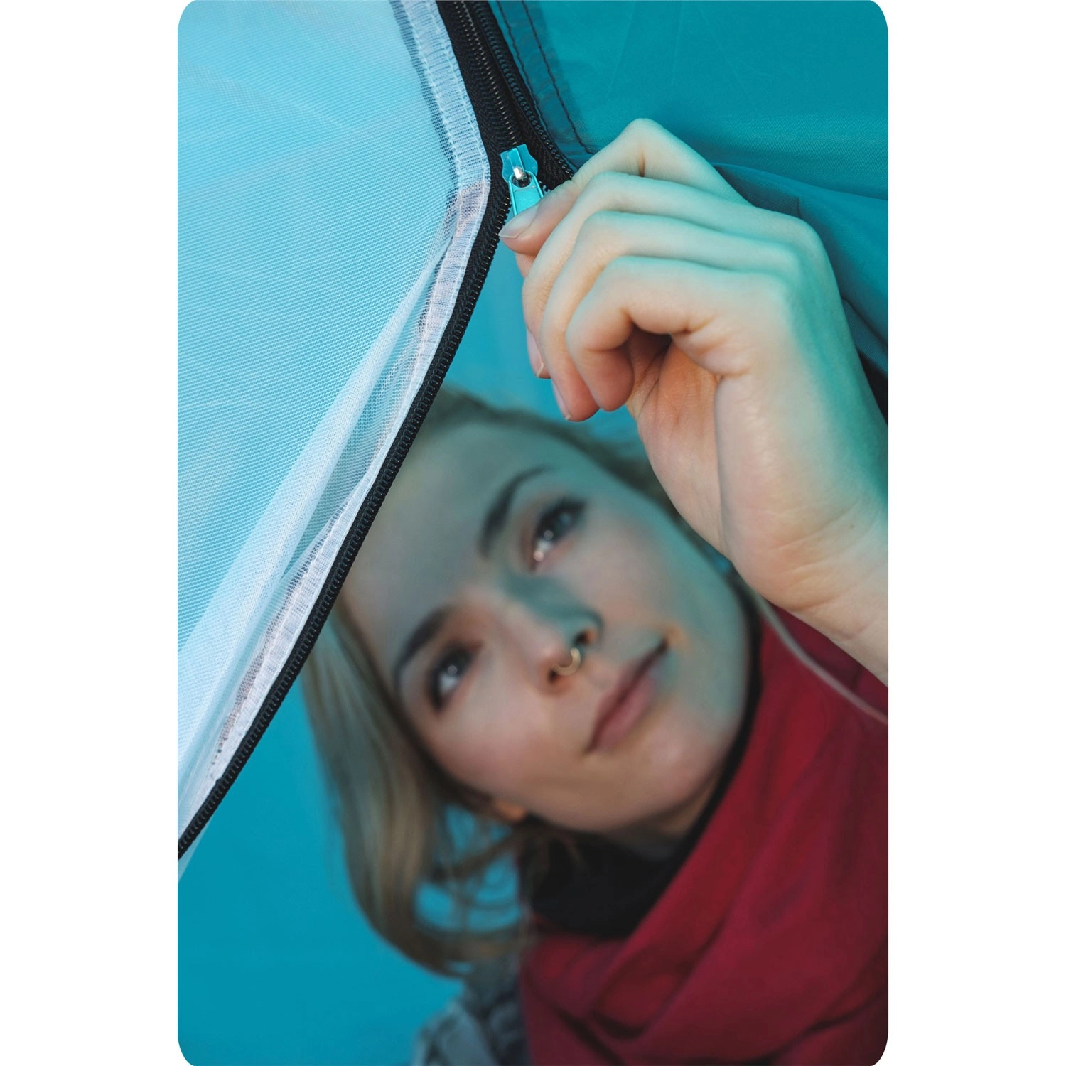 La tenda è facile da montare e, grazie al peso contenuto di 3,84 kg, la porti senza problemi per il campeggio del weekend, i festival o il campeggio sul lago. All'interno trovi una pratica tasca per gli oggetti essenziali e spazio sufficiente per dormire e riporre l'attrezzatura di base.