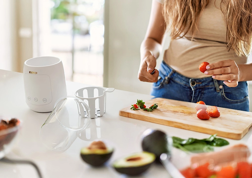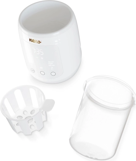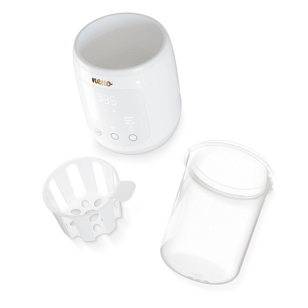 Neno Tocco offre un modo sicuro e rapido per portare la pappa del bambino e il latte materno alla temperatura ideale. Le funzioni 6 in 1 coprono le esigenze quotidiane: dalla delicata sterilizzazione di biberon e succhietti allo scongelamento sicuro del latte in sacche, fino al preciso mantenimento della temperatura quando è il momento della poppata. Le dimensioni compatte e la compatibilità universale (fino a Ø 77 mm) lo rendono una scelta perfetta per cucine piccole e per i viaggi.