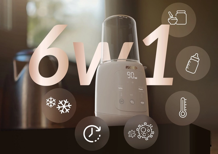 - 6 funzioni in 1 – riscaldamento del latte e delle pappe, scongelamento, sterilizzazione, riscaldamento rapido, mantenimento della temperatura.