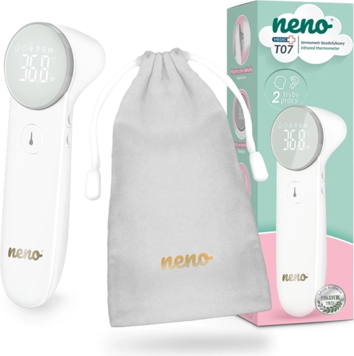 Il termometro senza contatto Neno Medic T07 è un alleato versatile per misurazioni rapide e igieniche della temperatura di bambini e adulti. Offre 5 modalità intuitive, tra cui la misurazione di fronte e orecchio, nonché della temperatura di oggetti e ambienti. Dopo aver rimosso il cappuccio, passa automaticamente alla modalità auricolare, così la misurazione richiede solo pochi secondi.