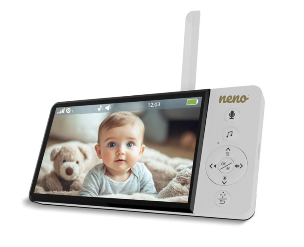 Tenete d’occhio il vostro bimbo in casa e in giardino. Il baby monitor video Neno Ciao combina un nitido display da 5" (480 × 854 px) con una telecamera orientabile Pan & Tilt, così con un tocco coprite l’intera stanza. La visione notturna fino a 5 m assicura immagini chiare anche al buio e, grazie alla comunicazione bidirezionale, potete tranquillizzare il bambino con la vostra voce.