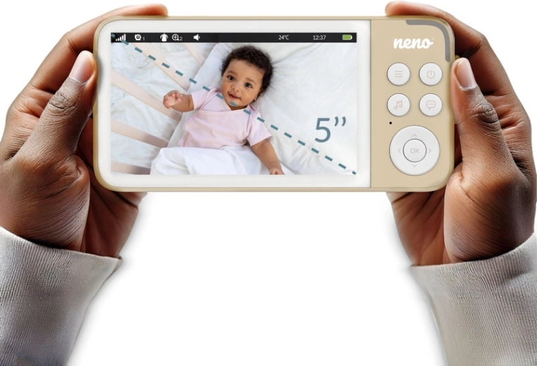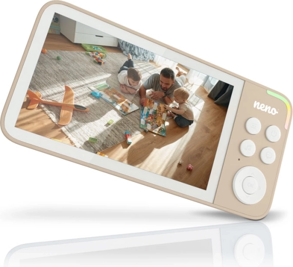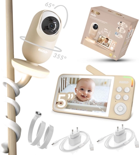Neno Vedo Cream è un baby monitor video affidabile che ti offre la massima visibilità su ciò che avviene nella cameretta. Il grande display LCD a colori da 5'' garantisce un’immagine chiara, mentre la modalità notturna automatica assicura riprese luminose anche al buio completo. La telecamera orientabile con controllo remoto consente di monitorare un’ampia area, mentre lo zoom 4× avvicina ogni dettaglio.