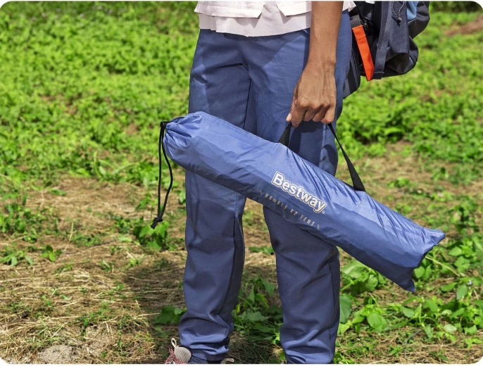 La tenda Bestway Ramble X2 è progettata per due persone e offre un riparo affidabile per brevi escursioni nella natura e in spiaggia. Il resistente tessuto in poliestere 190T con finitura superficiale garantisce una protezione di base contro vento e pioggia leggera (colonna d’acqua 300 mm), mentre le palerie in vetroresina mantengono la struttura stabile e flessibile.