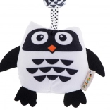 Il giocattolo sospeso a forma di gufo è realizzato in materiale morbido e piacevole, adatto alle esigenze dei più piccoli. La clip assicura un facile fissaggio al passeggino, al lettino o al marsupio. Grazie alle diverse trame superficiali, il giocattolo stimola il tatto dei bambini. Il sonaglio e gli elementi fruscianti stimolano l'udito, mentre l'uso di tonalità a contrasto incoraggia i sensi visivi. Il design in bianco e nero è la scelta migliore per i neonati che non hanno ancora sviluppato completamente la vista.