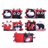 Prepara il tuo bambino a un incantevole viaggio alla scoperta del mondo delle forme e dei motivi con questo libro straordinario. Il libro è progettato in colori contrastanti come nero, bianco e rosso, ideali per la stimolazione visiva dei piccoli. Contiene quattro pagine di tessuto con animali come uccellini, coniglietti, gufi, volpi, orsi, scoiattoli e procioni.