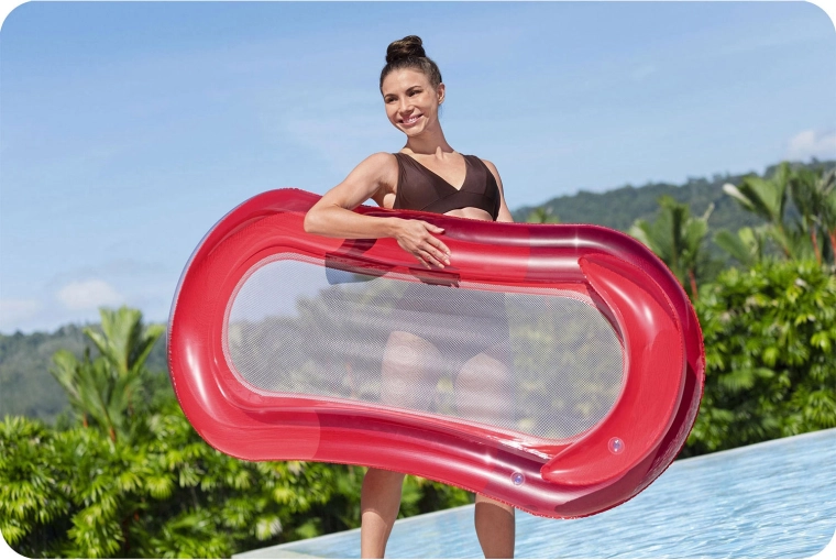 La rete centrale traspirante lascia passare l’acqua, rinfresca piacevolmente e aumenta il comfort durante la permanenza sdraiati. Grazie al PVC resistente, il materassino è leggero, facile da trasportare e pronto per molte stagioni in piscina, al lago e al mare.