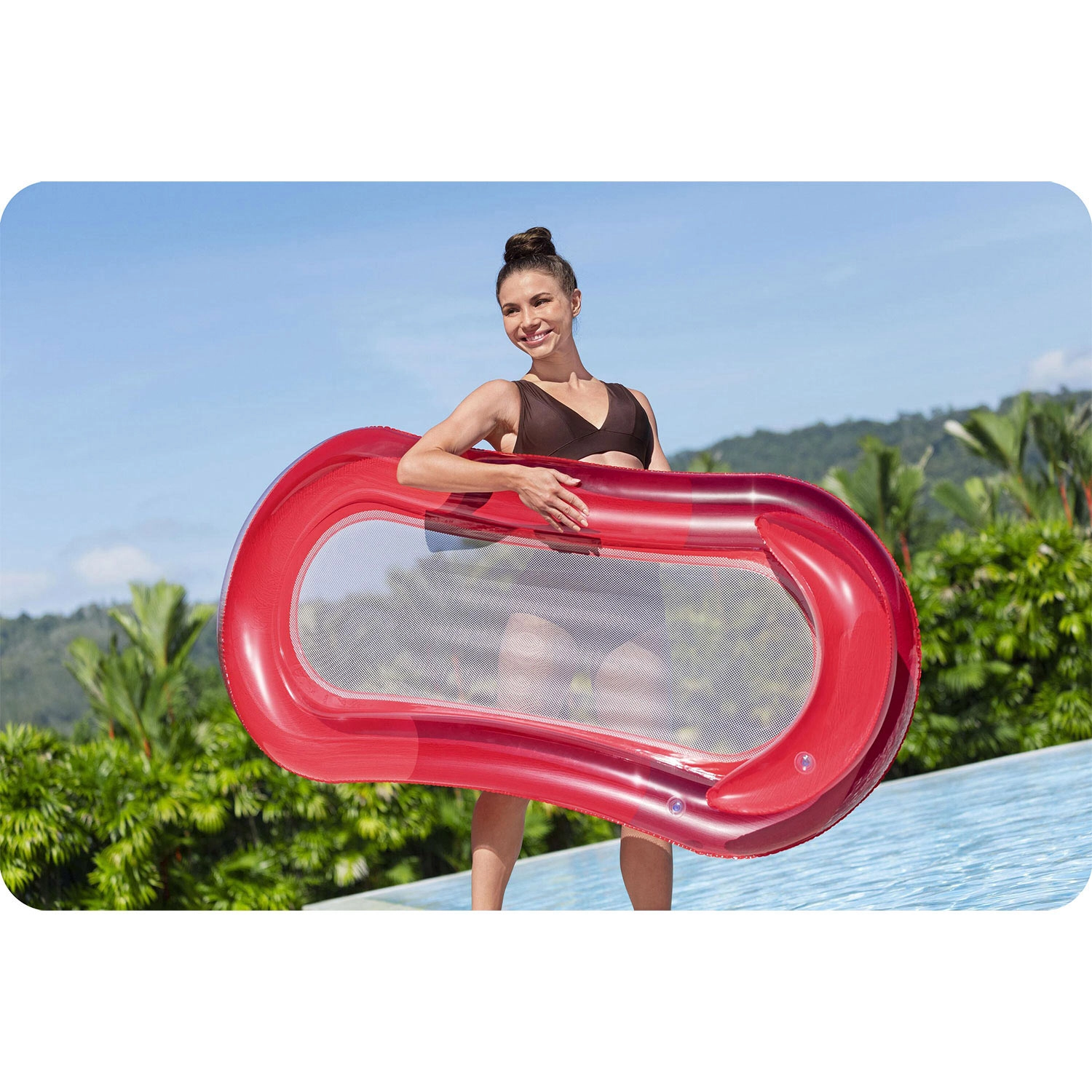 Il materassino in PVC rosso trasparente unisce leggerezza, robustezza e un look accattivante per piscina e mare.