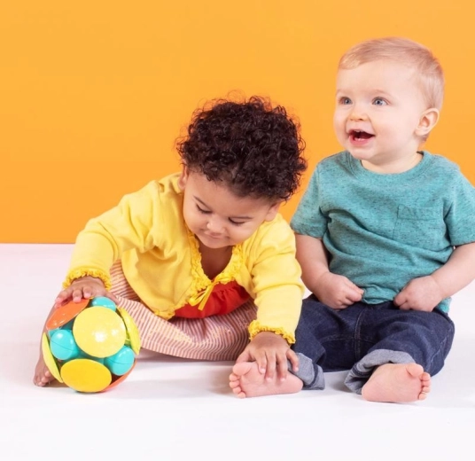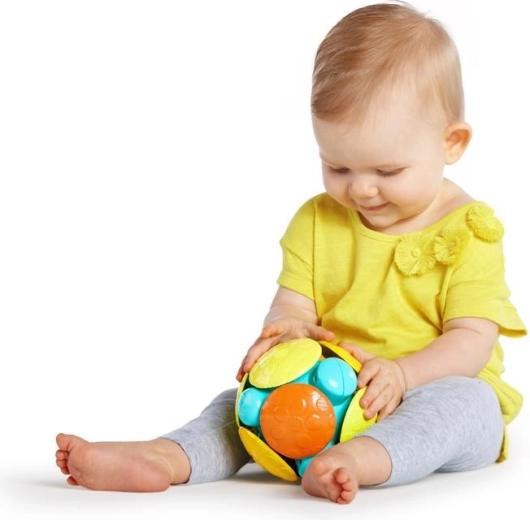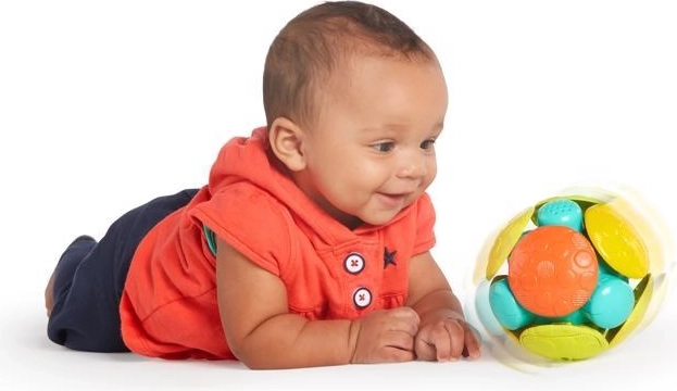 Questo gioco sensoriale favorisce lo sviluppo motorio, la percezione tattile e visiva e le prime fasi della attività motoria: dalla presa, allo scuotimento, fino al rotolamento sul pavimento. La struttura sicura, priva di BPA, PVC, lattice e ftalati, offre ai genitori tranquillità durante il gioco quotidiano.