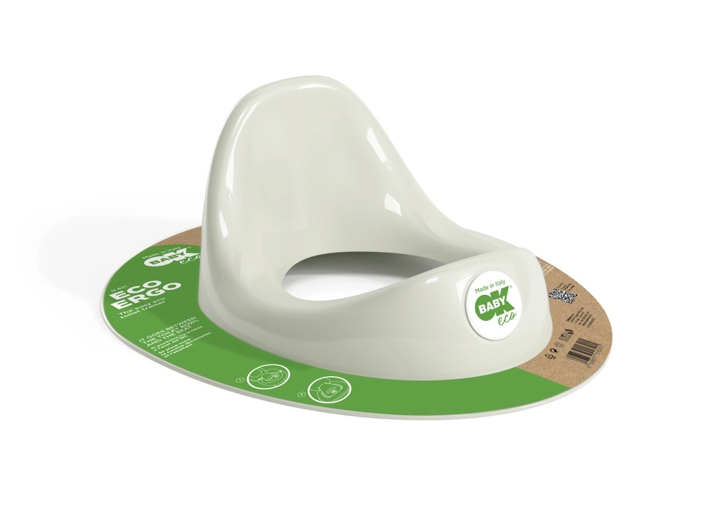 Il pratico riduttore per WC Ok Baby Ergo Eco+ facilita ai bambini il passaggio dal vasino al WC. È realizzato per il 98% in plastica riciclata, rispetta l’ambiente e si adatta alla maggior parte dei WC. La parte anteriore ergonomica rialzata è adatta ai maschietti, il riduttore si inserisce tra la tazza e la seduta e grazie al foro può essere facilmente appeso. Qualità Made in Italy.