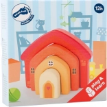 Pezzi di diverse dimensioni si impilano e si inseriscono l’uno nell’altro, favorendo prese precise e la coordinazione occhio–mano nei più piccoli.