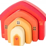 Questo gioco motorico a forma di casetta è composto da quattro pezzi ad arco che possono essere inseriti uno nell’altro oppure impilati. Il design semplice, i bordi arrotondati e le tonalità calde del legno rendono questo gioco un accessorio elegante per la cameretta e un ottimo strumento per lo sviluppo delle abilità.