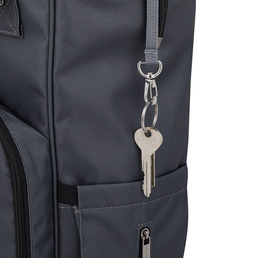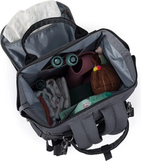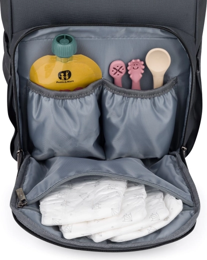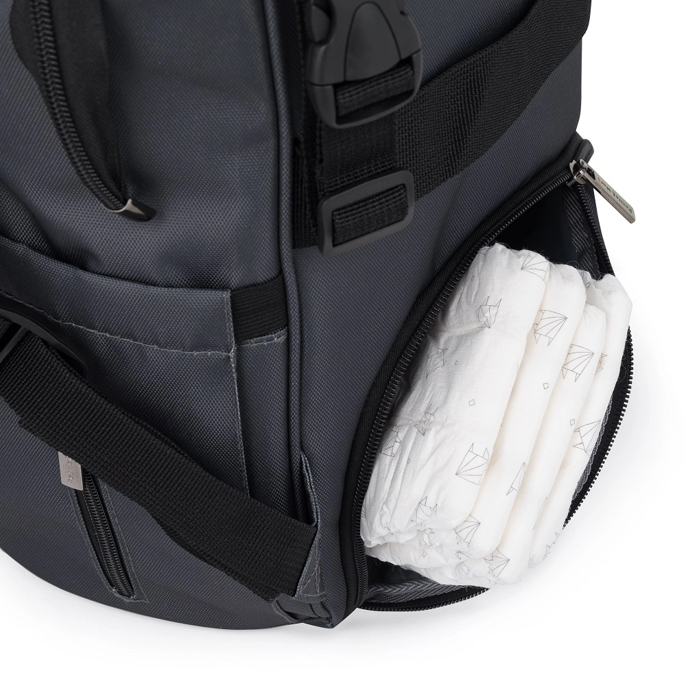 I dettagli studiati rendono questo zaino un partner affidabile: 11 tasche, tra cui 2 scomparti termici per biberon, tasche impermeabili per oggetti bagnati, tasche in rete per una visione perfetta e tasche esterne per bottiglia e salviette umidificate. Non mancano laccetto portachiavi, supporto esterno per giocattolo/pendente e cinghia per fissaggio al manico del trolley. La fodera chiara migliora la visibilità del contenuto per ricerche rapide e senza stress.
