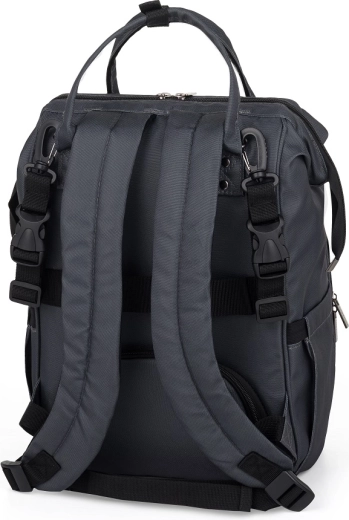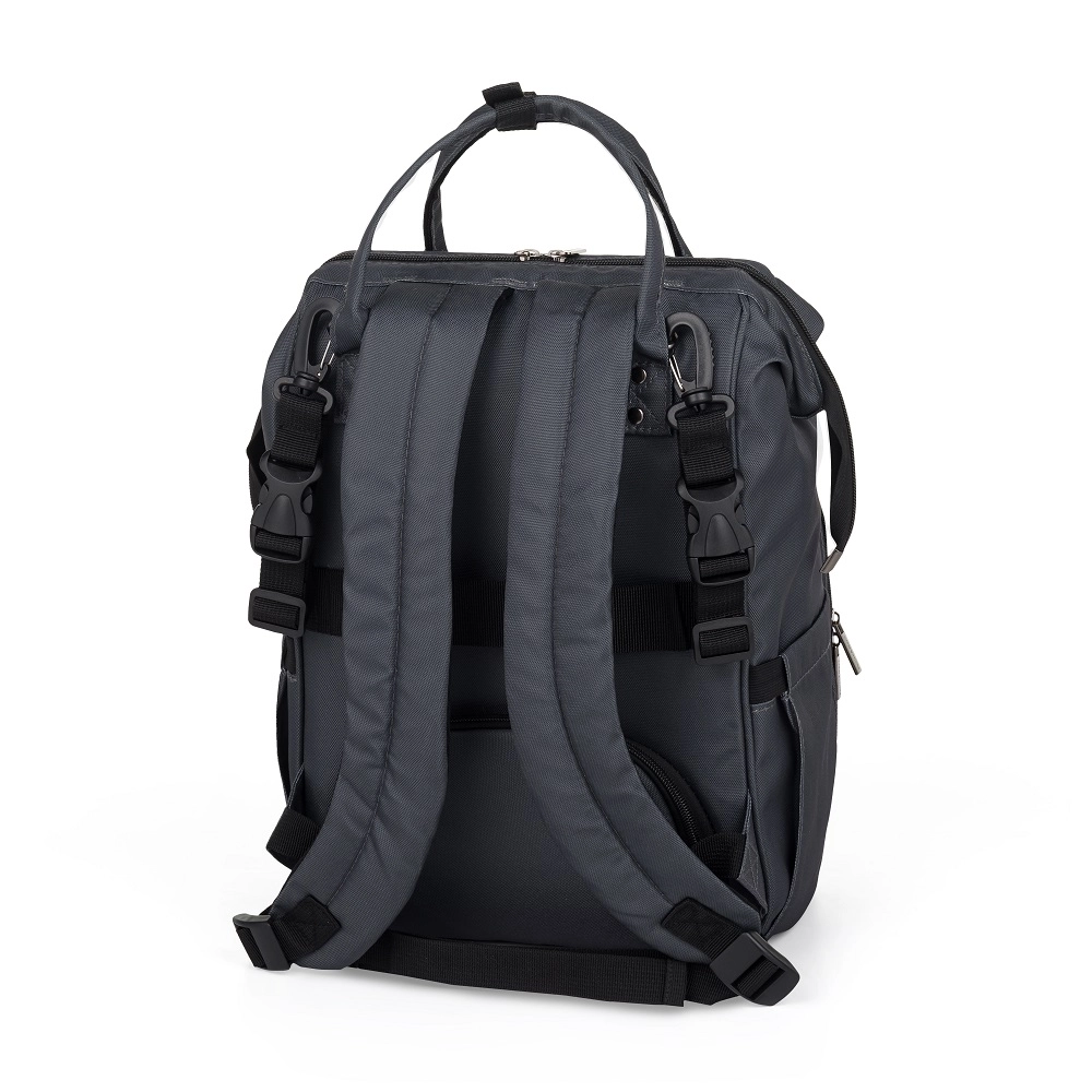 - Comfort e versatilità – spallacci regolabili, manici superiori, cinghie laterali per passeggino ed estetica elegante adatta sia a mamma che a papà.
