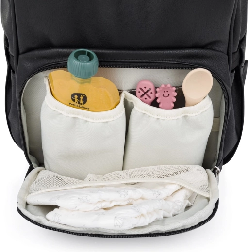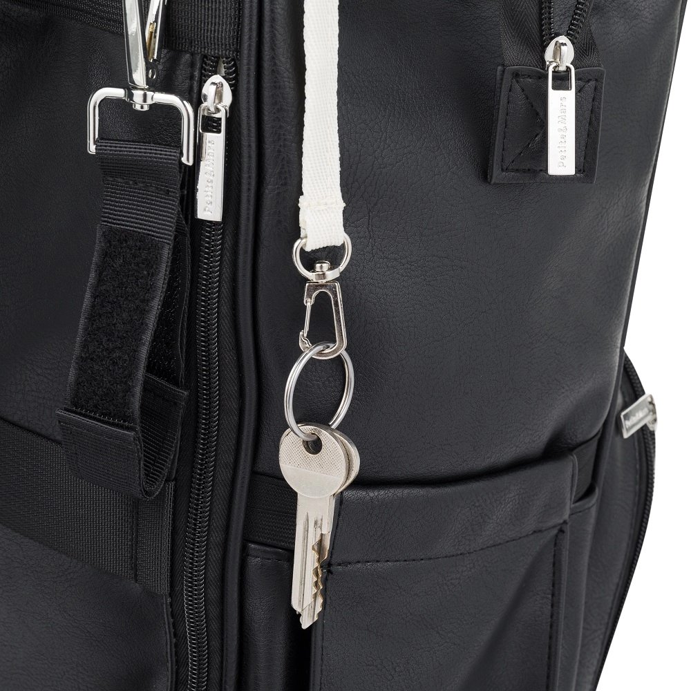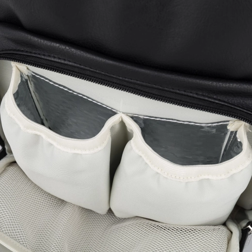 La dotazione studiata include 12 tasche funzionali tra cui scomparti termici per biberon, tasche impermeabili per indumenti bagnati, speciali tasche per tablet/notebook e una pratica apertura per salviette umidificate. Non mancano il cordino portachiavi, la tasca esterna espandibile per bottiglia e la cinghia per fissaggio al trolley durante i viaggi.