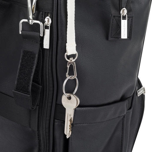 Interni ben strutturati, tasca separata per tablet, apertura per salviette umidificate e cordino portachiavi per un accesso rapido agli indispensabili.