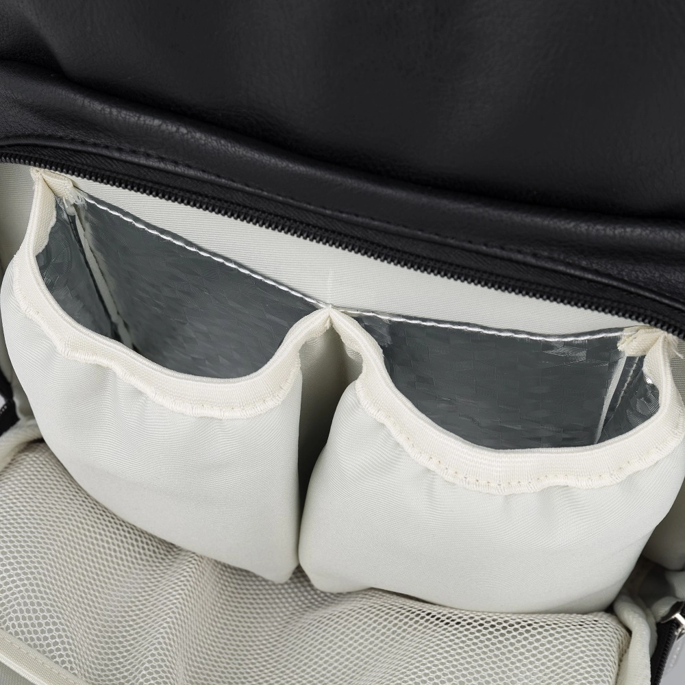 Ampia apertura con cerniera bidirezionale e due scomparti termici che mantengono i biberon alla giusta temperatura anche in viaggio.
