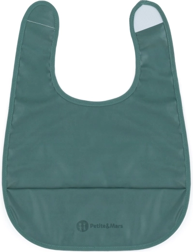 Il bavaglino PETITE&MARS Nate nella tonalità Misty Green è elegante e pratico, mantiene il tuo bebè pulito e comodo durante i pasti. È realizzato in resistente materiale PU impermeabile privo di PVC e ftalati, dotato di tasca raccogli-briciole, morbida chiusura a strappo regolabile e si pulisce facilmente con una semplice passata.