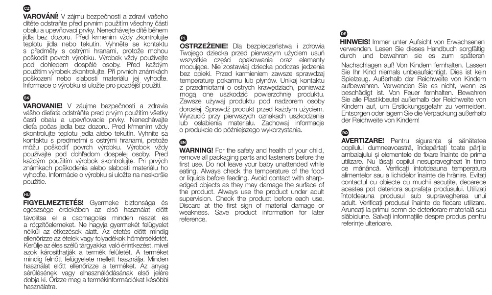 Il silicone flessibile senza BPA è delicato sulla pelle del bambino, si pulisce facilmente e può essere lavato in lavastoviglie.