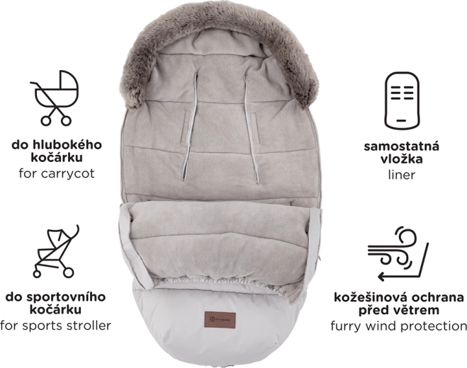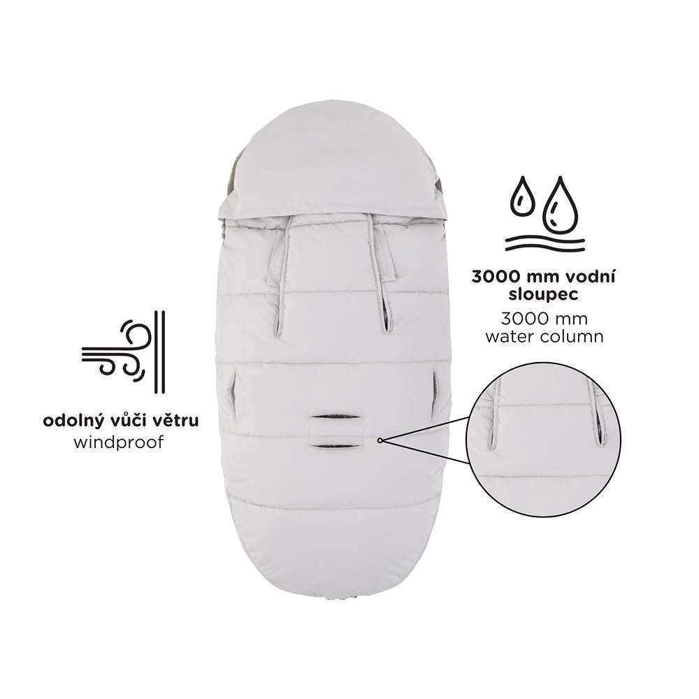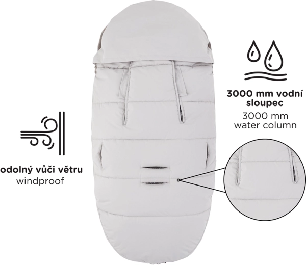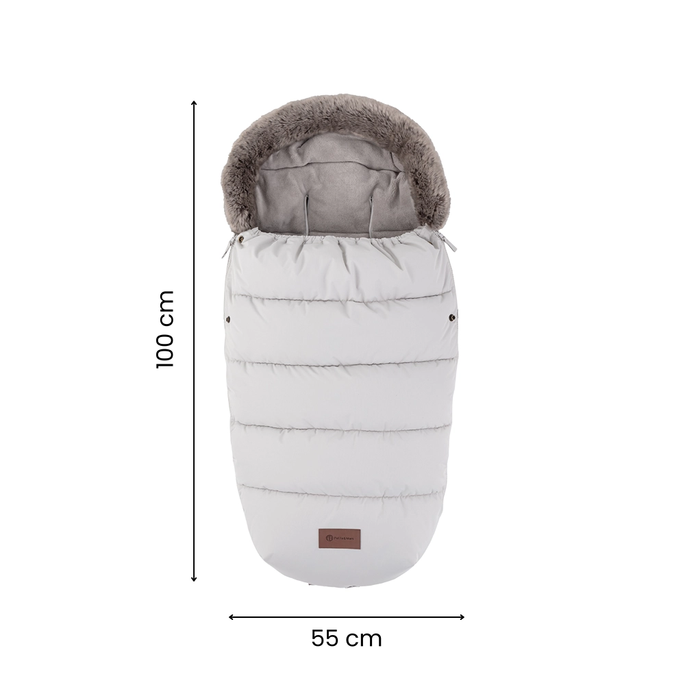Sacco termico 4in1 caldo e universale per i giorni freddi. Offre calore extra e morbido comfort, è impermeabile e antivento (3000 mm) con finitura ecologica BIONIC-FINISH ECO. Grazie a 6 aperture per le cinture si adatta alla maggior parte dei passeggini, ha pelliccia rimovibile e cerniere lungo tutto il perimetro per regolare la temperatura e aerare facilmente.