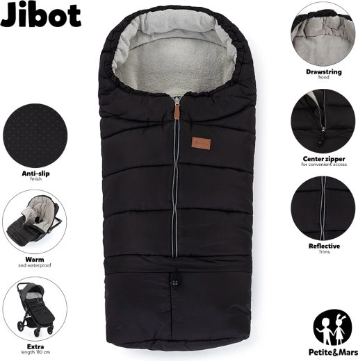Il sacco 3in1 PETITE&MARS Jibot Horizontal Ink Black è progettato per il massimo comfort dei bambini dalla nascita fino a circa 3 anni. Grazie allo strato esterno idrorepellente e antivento con colonna d’acqua di 1000 mm e alla morbida fodera in pile, il tuo bimbo rimane caldo e asciutto anche con meteo avverso. Le asole orizzontali per le cinture consentono di far passare i nastri senza scollegarli, aumentando la compatibilità con passeggini e seggiolini di vari marchi.