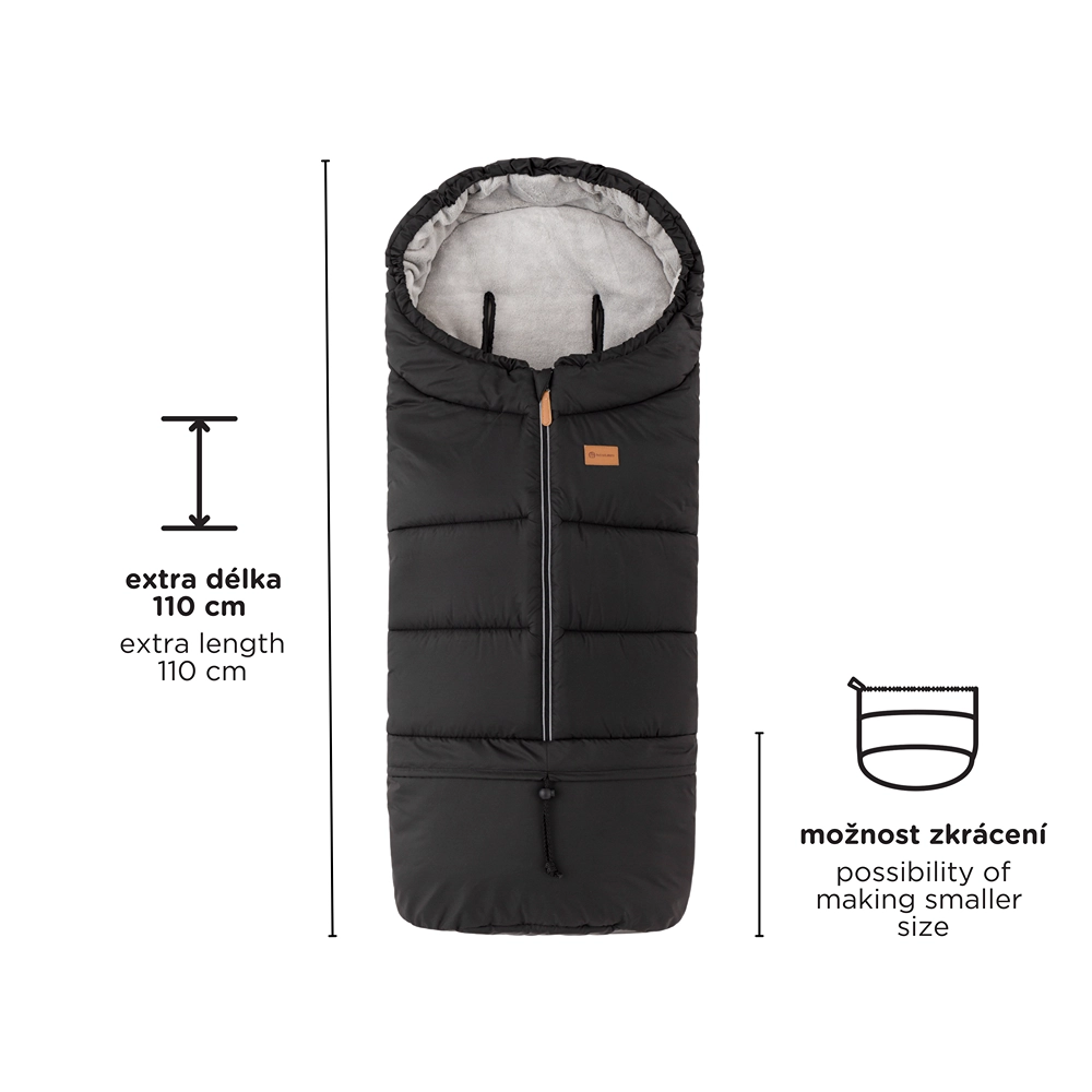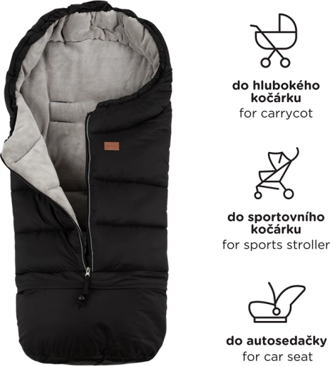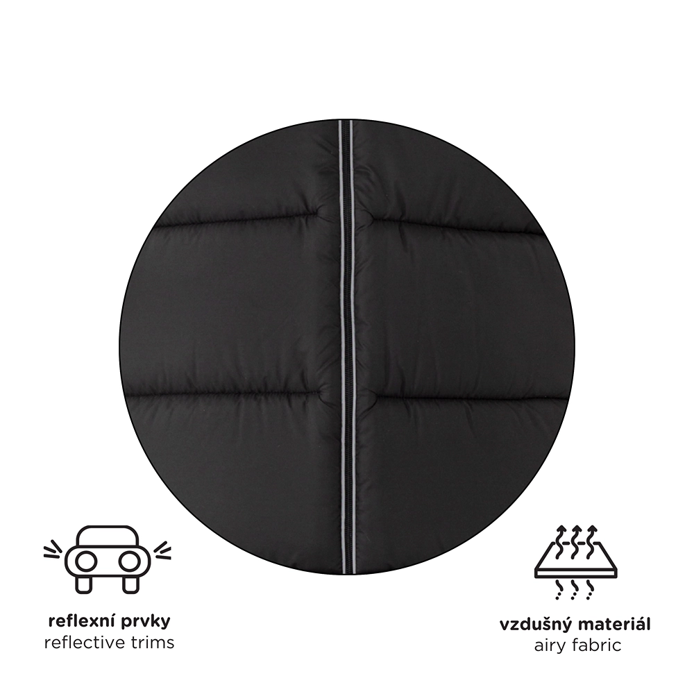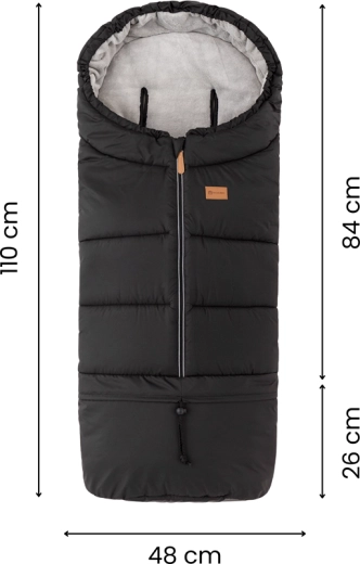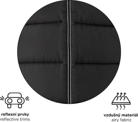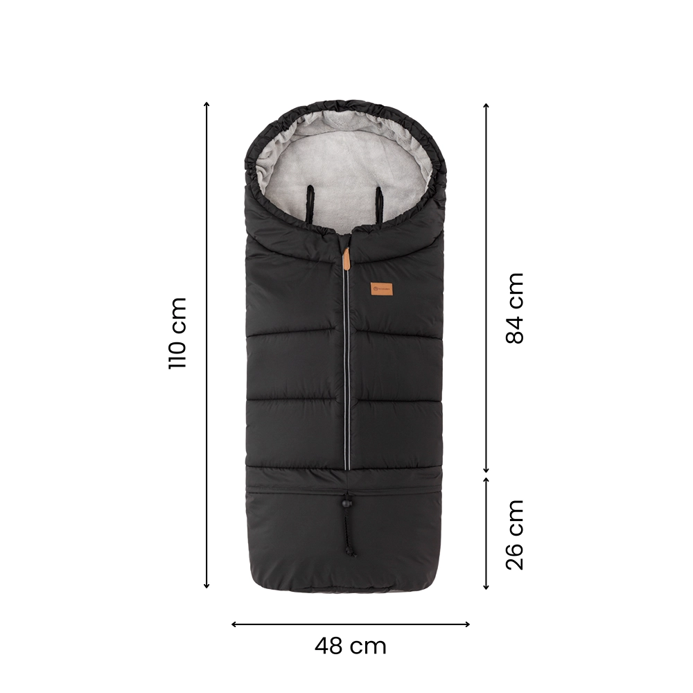 Le studiate aperture verticali per le cinture di sicurezza offrono ampia compatibilità con la maggior parte dei marchi di passeggini. Il retro antiscivolo (ABS) evita che il sacco scivoli sul sedile e gli elementi riflettenti aumentano la sicurezza con scarsa visibilità. La zip centrale facilita l’accesso rapido al bambino e la parte inferiore, facilmente lavabile, è pratica anche per piedini con le scarpe.