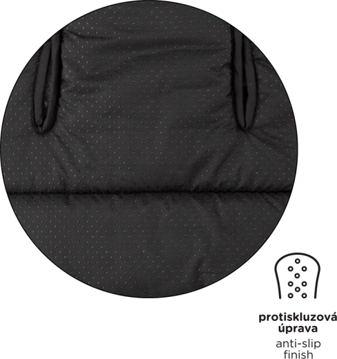 Le aperture verticali per le cinture e il retro antiscivolo (ABS) garantiscono un fissaggio sicuro e stabile nella maggior parte dei passeggini e dei seggiolini auto.