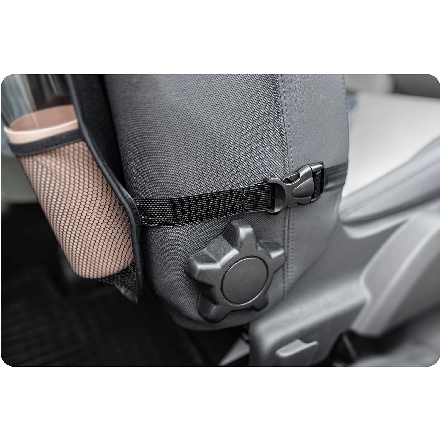 L’installazione si fa in un attimo grazie alle cinghie regolabili. I bambini hanno tutto a portata – tablet, snack, bottiglia e giochi preferiti – e tu guidi sereno. Ideale per viaggi lunghi e tragitti quotidiani.