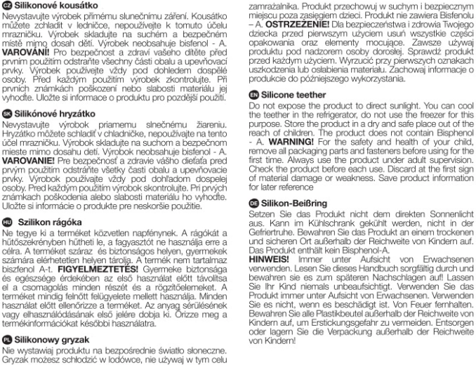 Il silicone alimentare morbido e flessibile massaggia le gengive e aiuta ad alleviare il dolore durante la crescita dei dentini. Le superfici lisce sono ideali per l'applicazione del gel rinfrescante.