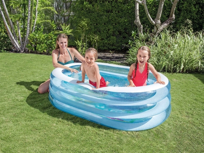 Questa piscina ovale per bambini INTEX porta un gioco d’acqua sicuro e divertente a casa tua. Tre camere d’aria trasparenti creano pareti stabili e morbide e confortevoli, mentre il fondo colorato con motivi allegri stimola la fantasia dei più piccoli. Grazie alle dimensioni compatte 163 × 107 × 46 cm e al peso contenuto, si trasporta e si ripone facilmente.