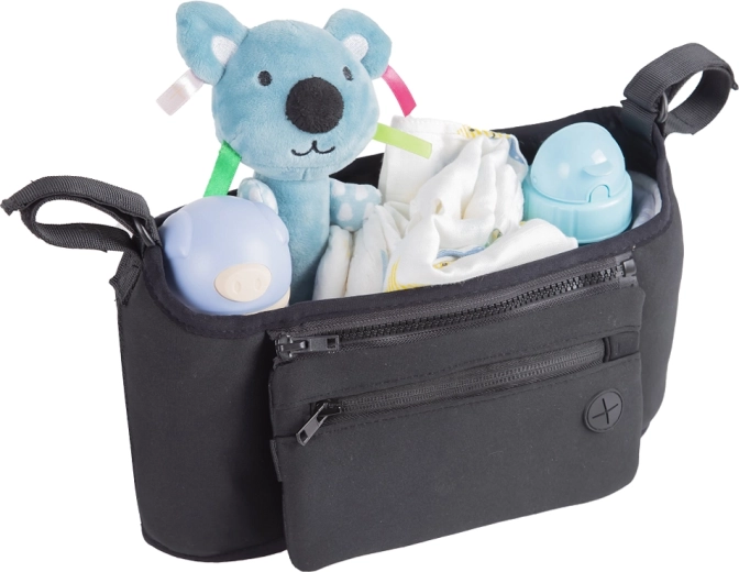 L’installazione è rapida e affidabile: le cinghie con velcro assicurano un fissaggio stabile su qualsiasi tipo di passeggino. Con una portata massima di 2 kg, l’organizer è progettato per rimanere stabile e non intralciare la guida. Il design nero ed elegante si abbina a ogni passeggino e mantiene i tuoi effetti ordinati e ben organizzati senza bisogno di portare un’altra borsa.