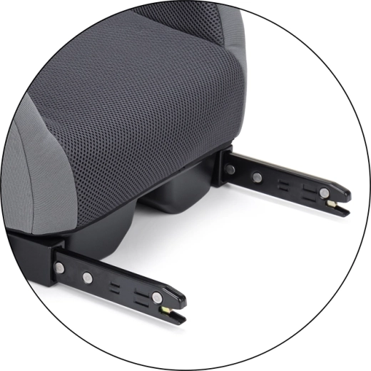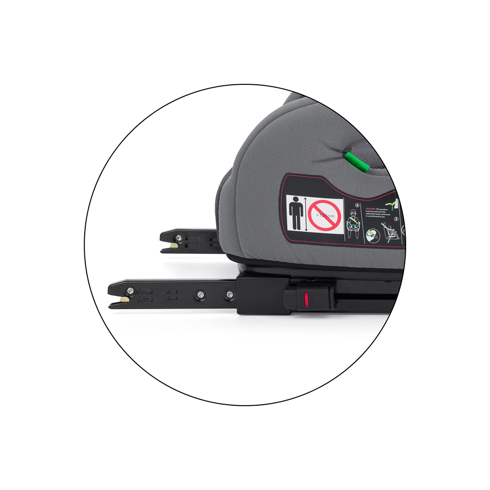 I connettori ISOFIX integrati assicurano un’installazione solida e rapida, che impedisce lo spostamento del rialzo e aumenta la sicurezza in frenata.