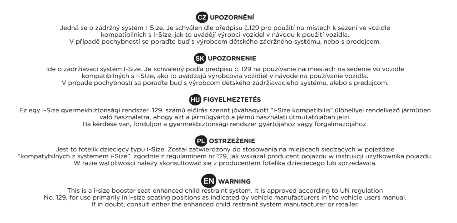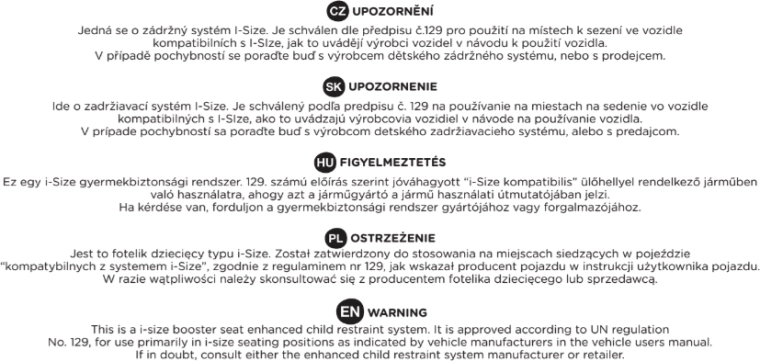 - i-Size ECE R129 – standard di sicurezza moderno per il corretto posizionamento e passaggio della cintura