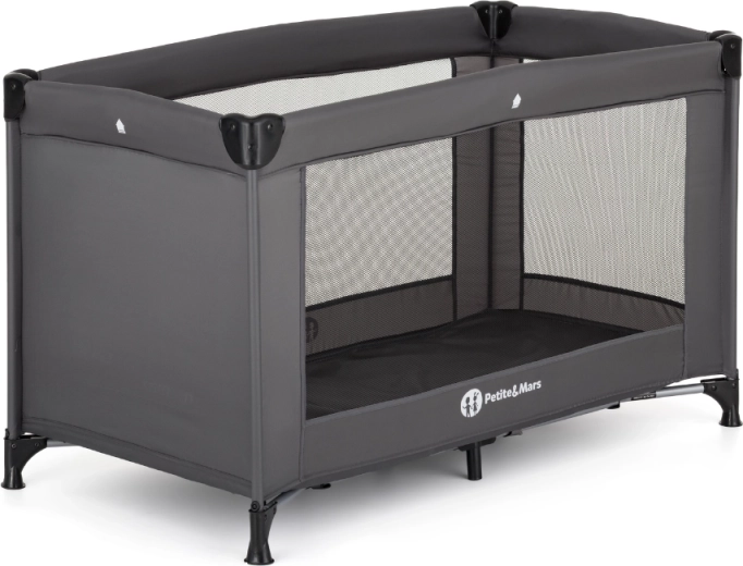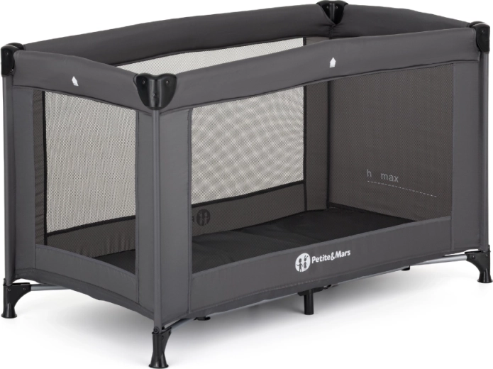 Il lettino da viaggio PETITE&MARS Koot Lite, leggero e compatto, nell'elegante colore grigio scuro, è ideale per i viaggi e per la casa. Offre una struttura metallica stabile, sponde laterali in rete traspirante per una migliore circolazione dell'aria e un sistema di sicurezza Double Lock contro la chiusura accidentale. Si piega facilmente, entra nella borsa da trasporto ed è adatto a bambini fino a 15 kg.