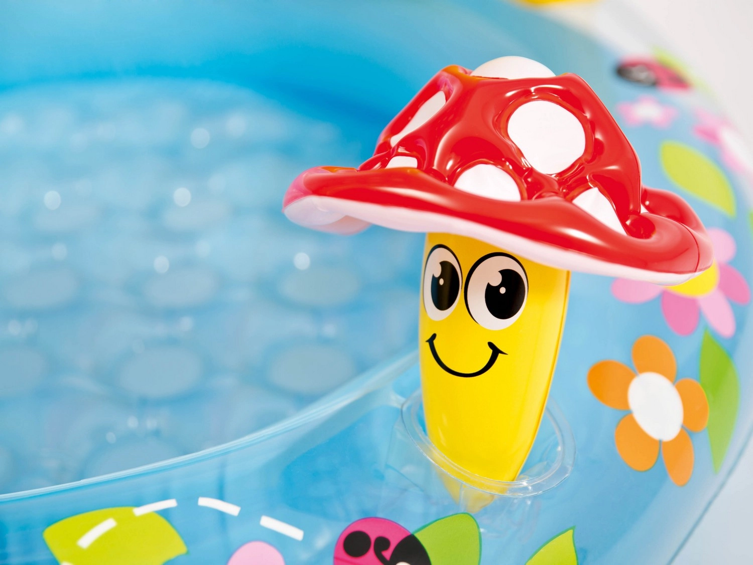 Regala ai bambini un angolo d’acqua sicuro in giardino o in terrazza. La piscina INTEX con allegra grafica floreale e l’iconico tettuccio a fungo offre ombra nelle giornate calde e un ambiente piacevole per i primi giochi in acqua. Grazie al pavimento morbido e testurizzato, i più piccoli si sentono comodi e stabili.