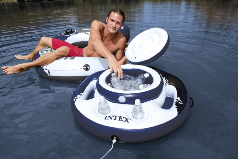La ghiacciaia galleggiante INTEX trasforma piscina, lago o fiume in un'oasi di relax. Il capiente vano centrale con coperchio accoglie ghiaccio e bottiglie, mentre cinque portabicchieri integrati tengono lattine e bicchieri sempre a portata. La struttura stabile in PVC rinforzato e le tre camere d'aria separate garantiscono navigazione sicura e lunga durata.