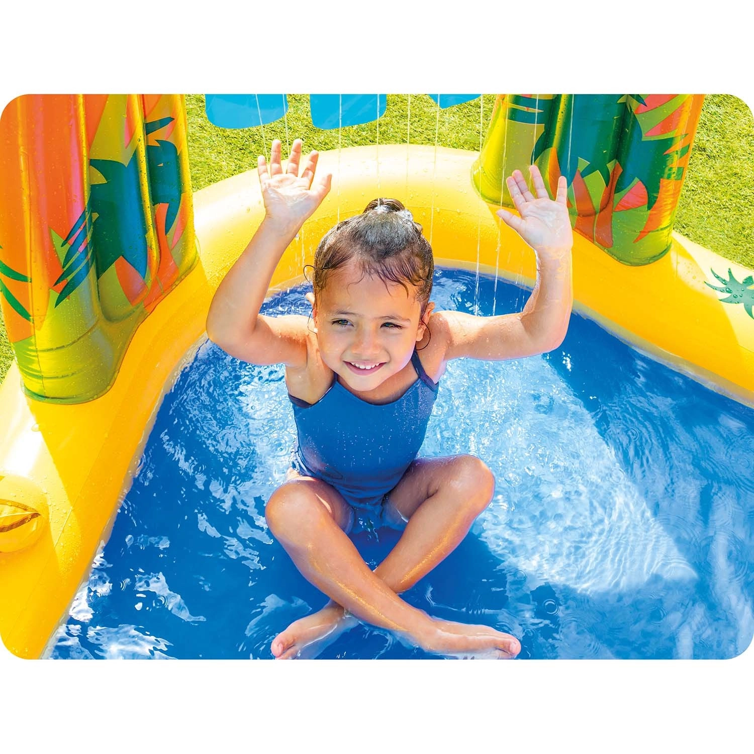 L’irroratore integrato crea una piacevole pioggia d’acqua dalla palma/foglia. Basta collegare il tubo da giardino e i bambini si godranno una rinfrescante doccia durante le scivolate e i giochi in piscina.