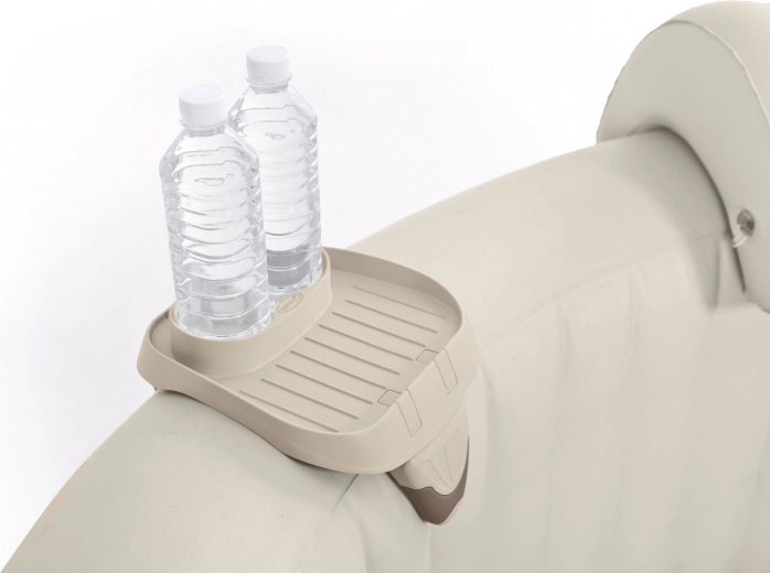 Goditi il relax in vasca idromassaggio senza interruzioni: il pratico portabevande INTEX ti permette di avere tutto a portata di mano. Offre un fissaggio stabile sul bordo superiore della parete, spazio per due bevande o snack e una struttura resistente in colore neutro che si adatta a qualsiasi idromassaggio.