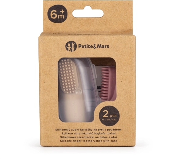 Insegnate sane abitudini fin dai primi mesi con gli spazzolini da dito PETITE&MARS. Grazie al morbido silicone alimentare senza BPA si prendono cura con delicatezza delle gengive e dei primi dentini. Facili da infilare sul dito per un controllo perfetto e una pulizia sicura, mentre la pratica custodia mantiene gli spazzolini igienicamente puliti a casa e in viaggio. Ideali dai 6 mesi per la routine quotidiana e per dare sollievo durante la dentizione.