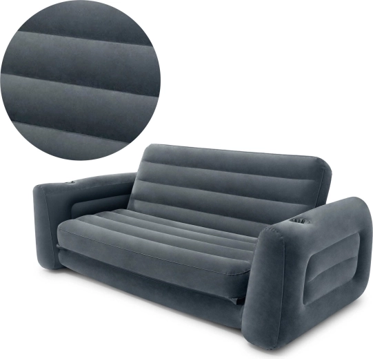 Il divano gonfiabile 2 in 1 di INTEX combina una seduta confortevole con un vero e proprio spazio per dormire. Gli schienali alti e i braccioli robusti garantiscono stabilità e un supporto piacevole senza mal di schiena. La superficie in velluto è morbida al tatto, ma al contempo resistente e facile da pulire: basta passare un panno umido.