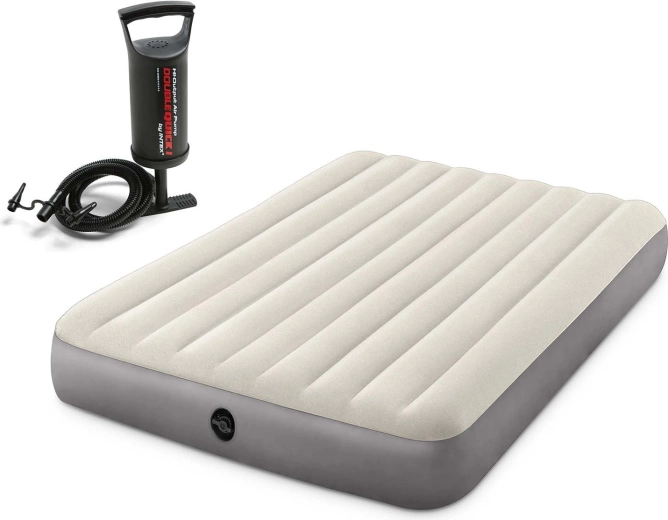 Il materasso gonfiabile doppio INtex con dimensioni 203 × 152 × 25 cm offre un sonno confortevole a casa e in viaggio. Grazie alle tecnologie FIBER-TECH e DURA-BEAM, il materasso è stabile, resistente e mantiene la forma anche sotto carichi più elevati. La confezione include una pompa manuale a pistone per un gonfiaggio rapido e una toppa per eventuali riparazioni. La superficie floccata garantisce un tocco piacevole e antiscivolo.