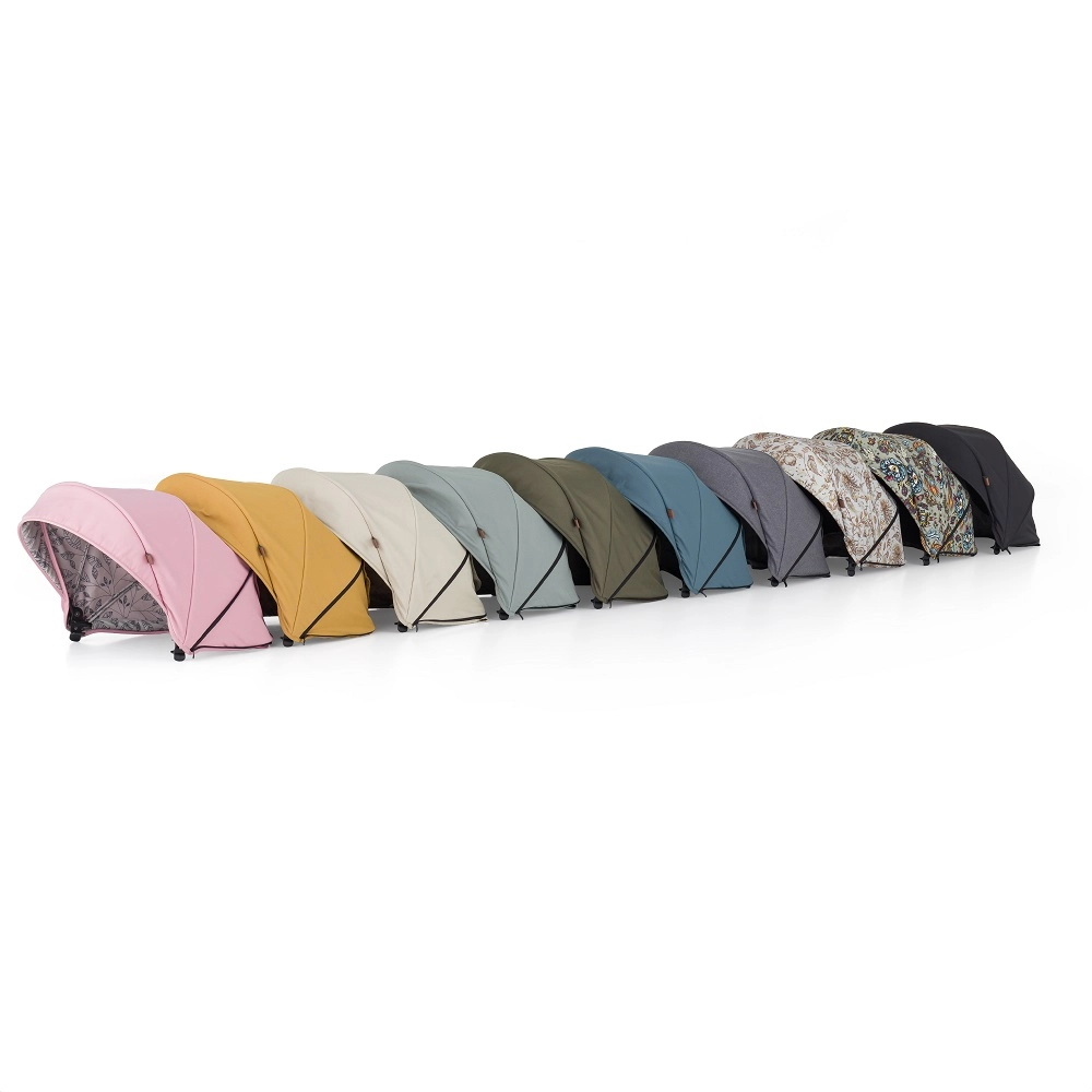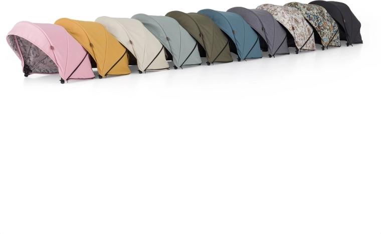 Il tettuccio si monta e si rimuove con facilità, ha un trattamento idrorepellente e un’elevata protezione UV SPF 50. Nella confezione trovi anche le imbottiture delle cinture in tre parti e l’inserto double-face con stampa per il massimo comfort e un cambio di stile immediato.