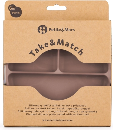 Il piatto divisorio in silicone PETITE&MARS della collezione TAKE&MATCH aiuta i bambini a imparare a mangiare in autonomia. Tre capienti scomparti mantengono i cibi separati, le forme arrotondate facilitano la presa e la forte ventosa aderisce saldamente alle superfici lisce. Il resistente silicone alimentare senza BPA è sicuro per pietanze calde e fredde.