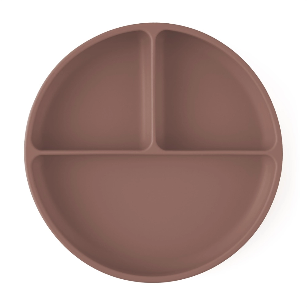 Pratico piatto rotondo in silicone alimentare con ventosa e tre scomparti che mantiene il cibo separato e ben fermo al suo posto. È senza BPA, adatto al microonde, alla lavastoviglie e al frigorifero, ideale per l’alimentazione autonoma dei bambini dai 6 mesi.