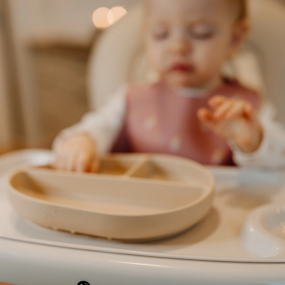 Il piatto aderisce saldamente al tavolo o al vassoio del seggiolone, evitando che scivoli durante i pasti. Ideale per mangiare in autonomia senza disordine inutile.