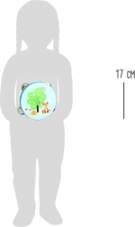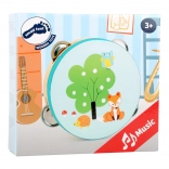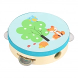 Il tamburello è decorato con immagini di animaletti come volpe, riccio e gufo, che lo rendono particolarmente attraente per i bambini.