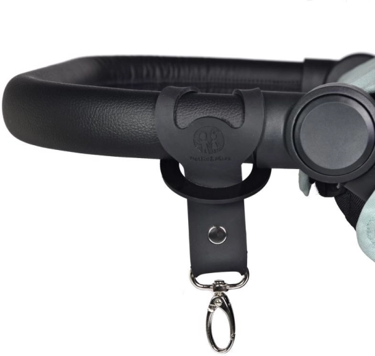 Avvolgi semplicemente la cinghia attorno al manico del passeggino e fissala con il bottone a pressione; la borsa si aggancia al robusto moschettone girevole.