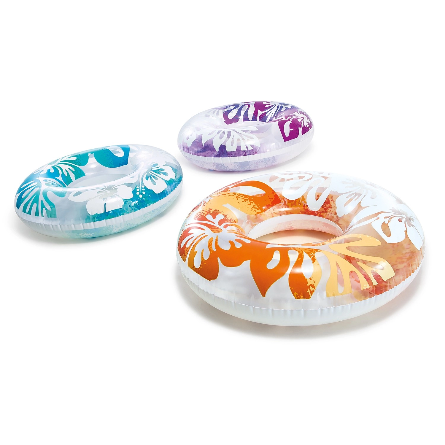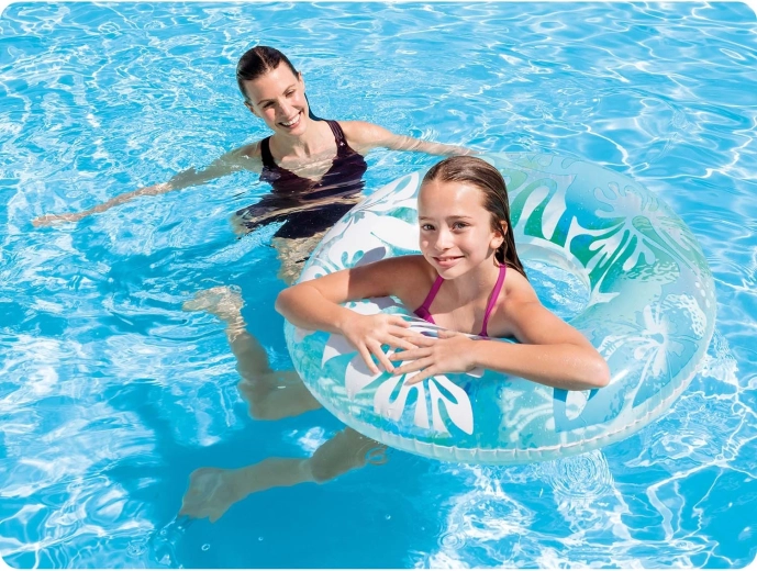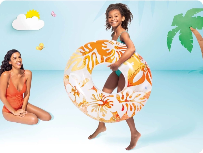 La ciambella gonfiabile INTEX Hawaii si distingue per il vinile trasparente con stampa floreale tropicale in colori accattivanti. È ideale sia per il relax in superficie sia per il gioco in acqua. Grazie alla lavorazione di qualità in PVC robusto, la ciambella è resistente a piccole abrasioni ed è pronta per un’estate intera di divertimento.