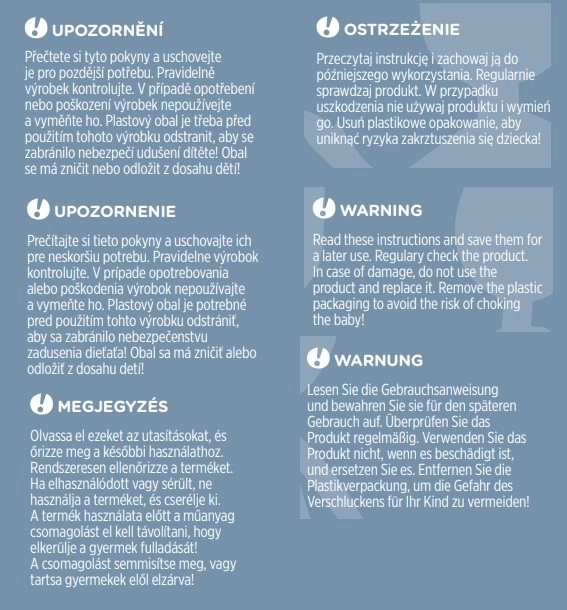 Controllare regolarmente lo stato del prodotto; in caso di usura o danneggiamento interrompere l’uso. Tenere l’imballaggio fuori dalla portata dei bambini.